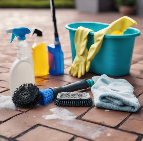 For manual cleaning, gather the necessary tools such as a stiff brush and scrubbers. These will help you physically remove the mildew from the concrete surface.