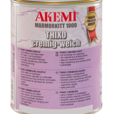 The Akemi® Buff Polyester Knife Grade is a creamy-soft, smooth filler with a thixotropic formula, making it ideal for precision work on vertical surfaces. Its paste-like consistency ensures easy application, even on corners and edges, while providing strong, rigid bonding for a range of natural stones, granite, marble, limestone, concrete ashlar, and terrazzo. Choose Akemi® Buff Polyester Knife Grade for dependable, clean results in natural stone bonding and filling applications.
