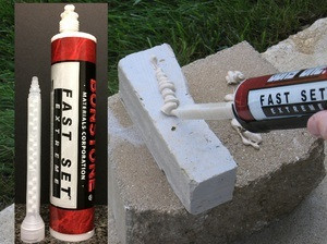 Fast Set™ Extreme is a 2-component, 100% solids, non-sag, knife-grade, moisture-tolerant, high modulus, high-strength structural epoxy adhesive. Fast Set™ Extreme is packaged for convenient handling in applications relating to contractor restoration, doweling, and general bonding.This knife grade (non-sag) exterior epoxy system is suggested for fast setting or cold weather applications where initial setting speed or use in cold temperatures is critical. Unlike most epoxies, Fast-Set™ cures at below freezing temperatures.The cartridge system eliminates measuring and mixing the two components. Easy to use and great for assembly line epoxy fabrication. Not recommended for interior application-strong odor when applying.