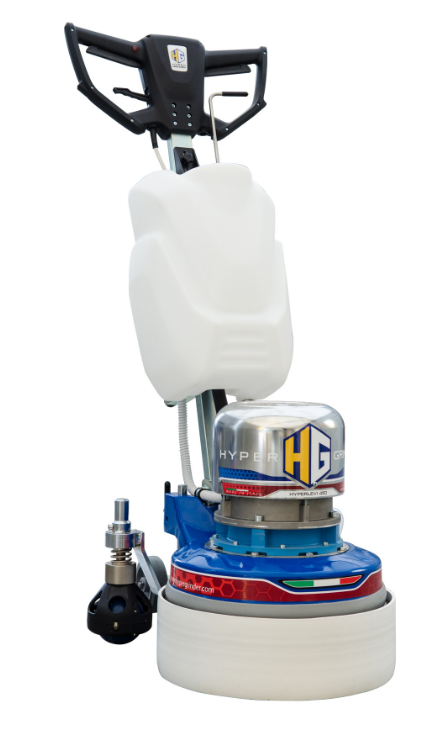 HG HyperLevi 450 Top Machine is a multi-functional, incredibly versatile and powerful single-phase grinder. The planetary gear H1200 with three 5.5 inch tools guarantees speed of excision and the best finish even in tight spaces. The H1200 Planetarium is equipped with elastic couplings on each disc, guaranteeing maximum reliability even on the most rough floors. The H1200 Planetarium is released in a few seconds to give place to brushes or draggers for abrasive discs, 17 inches in diameter, widening the fields of use.