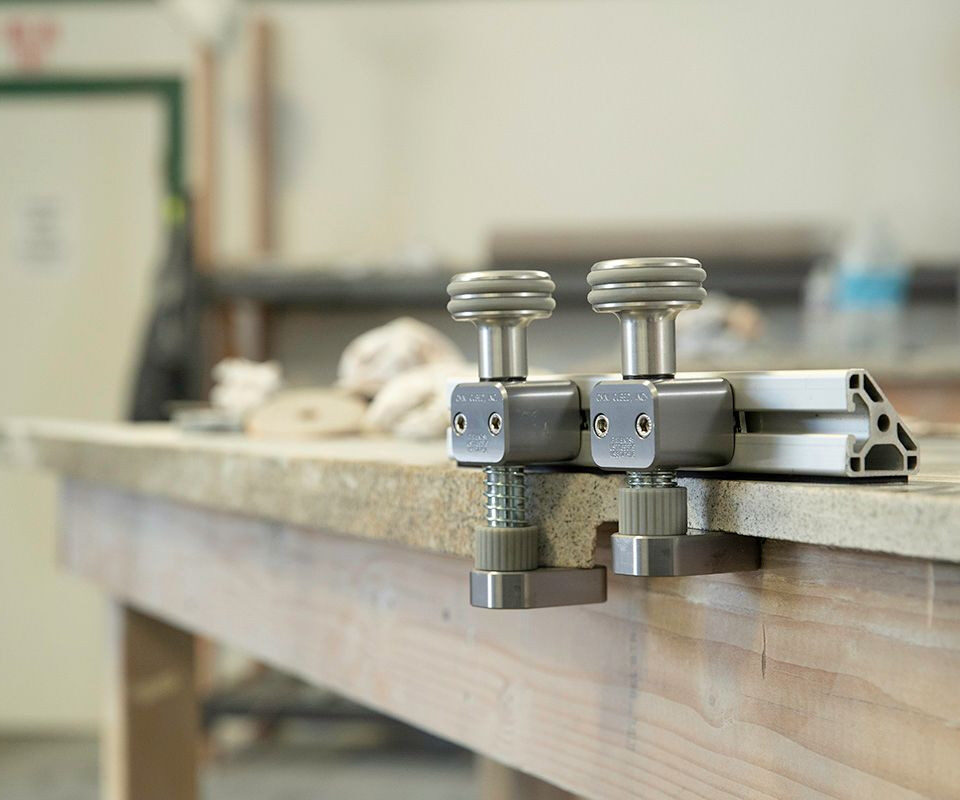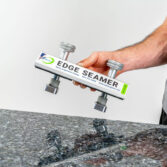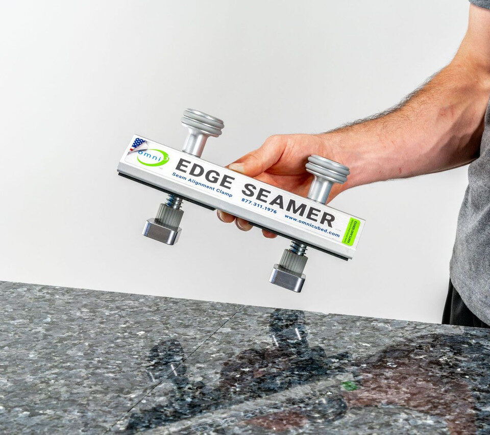 The Edge Seamer helps take the twist out of sink rails and cutouts, and dial-in flawless seams along material edges. This leveling device works great along any edge to ensure a consistent, even joint. The clamps have a wide range to accommodate many standard edges, and rubber bumpers to protect finished details. Integrated rail pads allow enough flexibility for fine adjustments on each side of your seam, to compensate for the slightest unevenness. The Edge Seamer is fast, easy, and offers great precision and reliability than shims only.