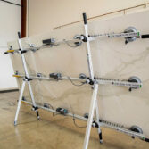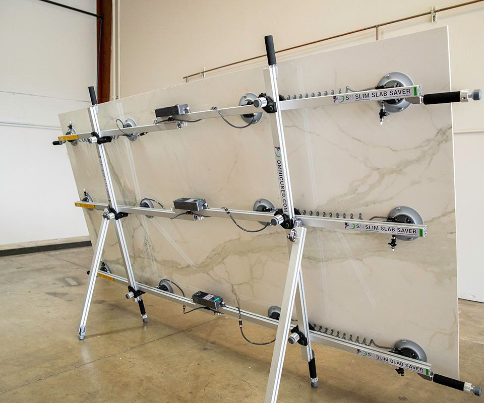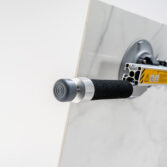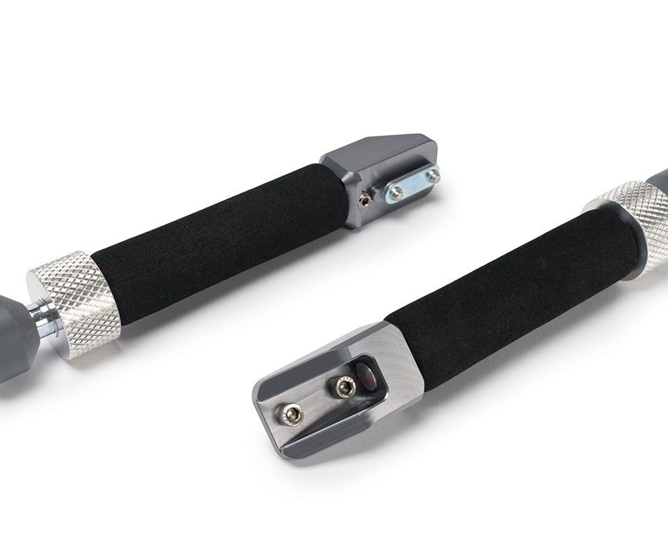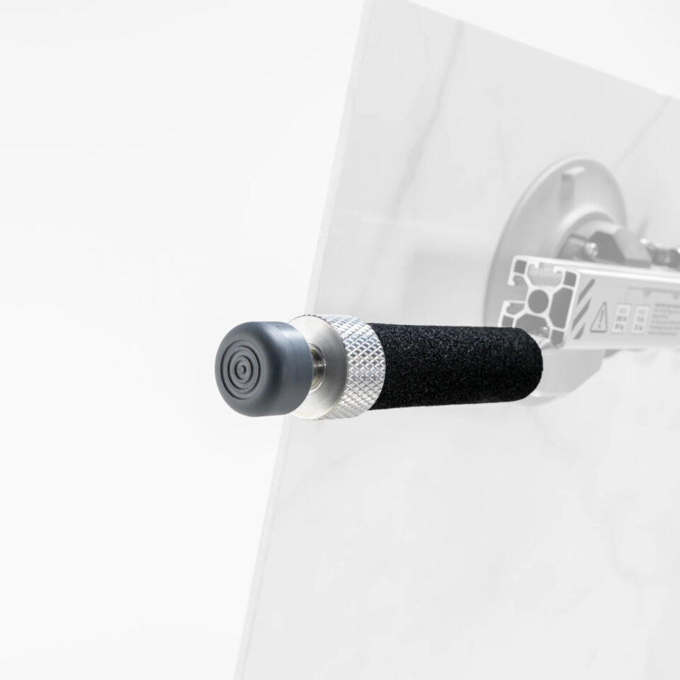 The Horizontal Handle with Leveler Leg Kit includes two end-mount handles, each equipped with adjustable leveling legs and non-marring PVC resting feet to protect finished surfaces. Designed to attach to the ends of any Omni Cubed® reinforcement rail, these handles make it easy to stand and precisely level materials for accurate vertical installations. Ideal for use with stone, glass, or tile.