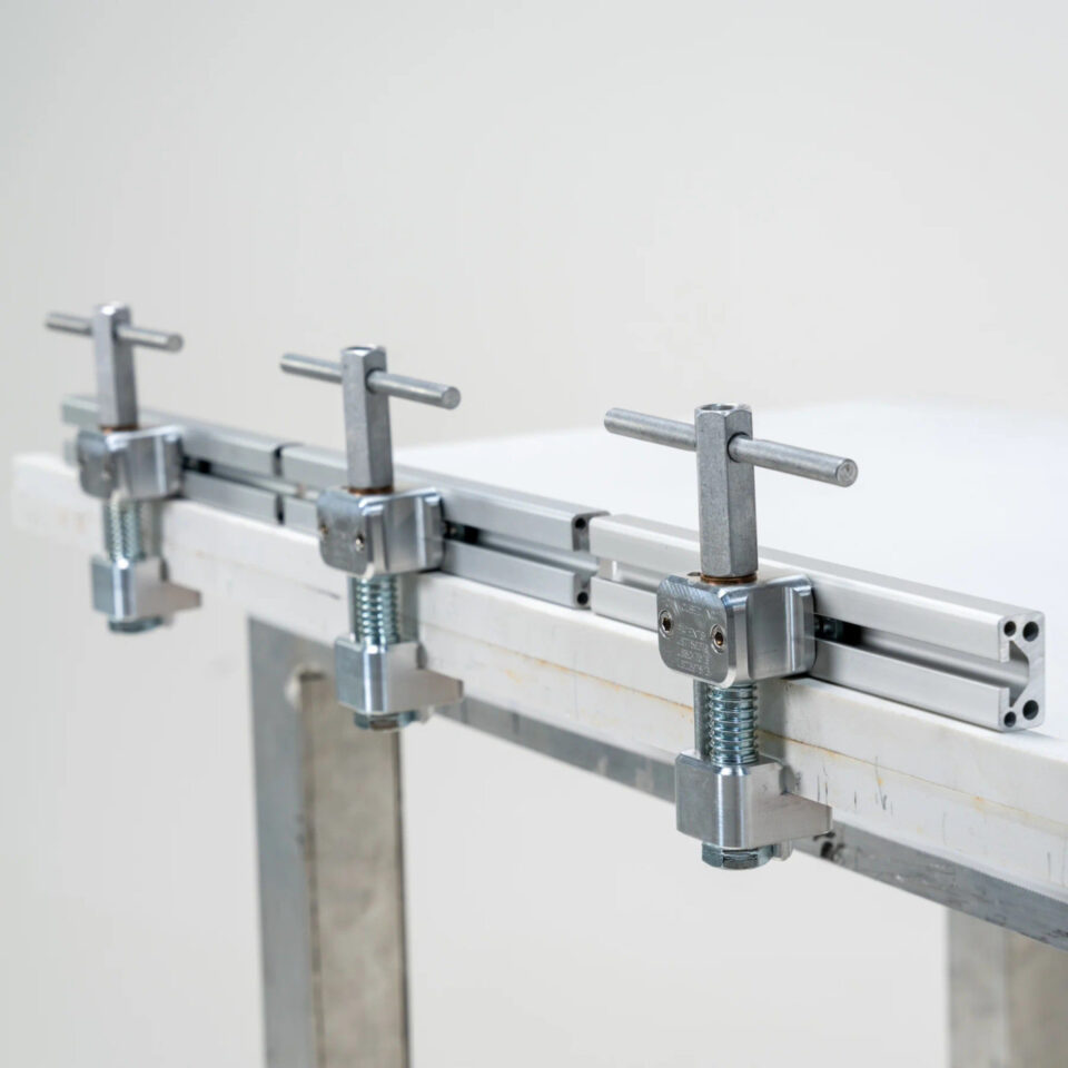 Revolutionize your countertop edge laminations with the Lam-Clamp™—the industry’s go-to solution for achieving flawless seams with speed, consistency, and long-term durability. Engineered with patented hidden clamp threads and designed to evenly distribute pressure across the entire rail, Lam-Clamp™ eliminates the hassle and risks of traditional clamping methods.