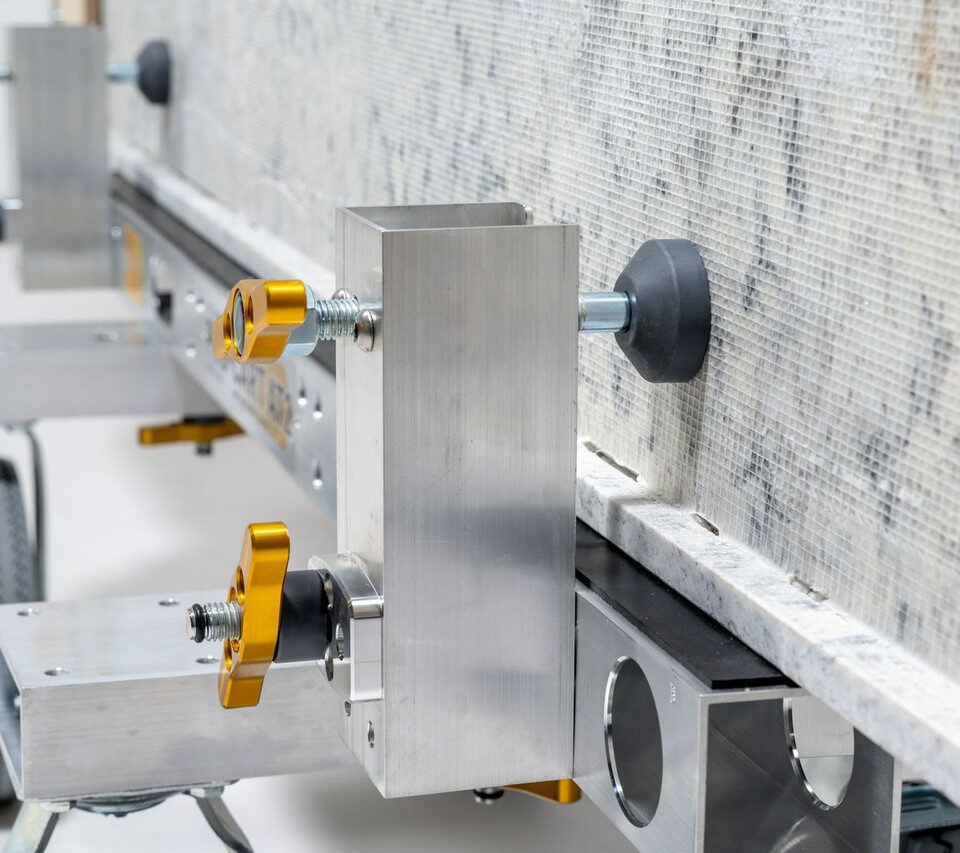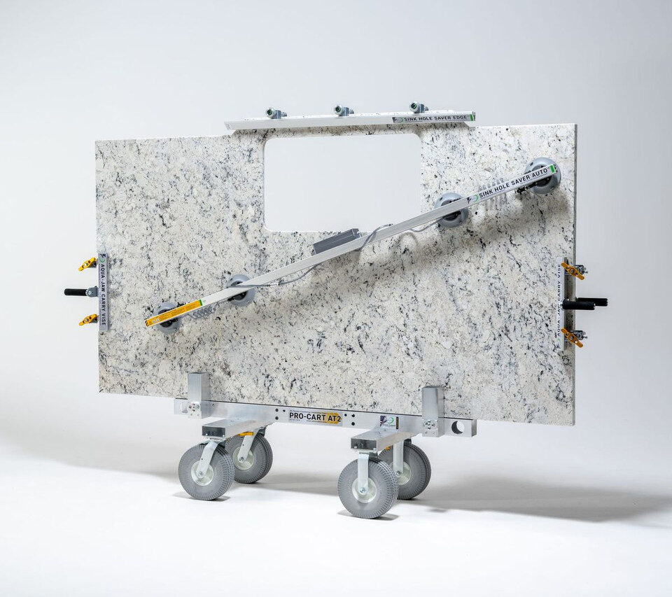 Built to tackle curbs, gravel, lawns, and stairs, the AT2 safely moves large, heavy slabs, panels, and glass pieces, significantly reducing physical strain on workers. Its collapsible clamp uprights allow for easy removal and tilting of materials, making handling stone and glass smoother than ever.