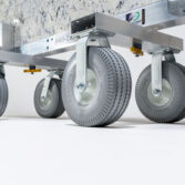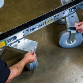 Equipped with durable 10″ tires and an innovative adjustable wheelbase, the cart can be customized to fit different stair tread sizes. Plus, the included Folding Kit lets you rotate the caster rails under the support beam for compact, hassle-free storage.