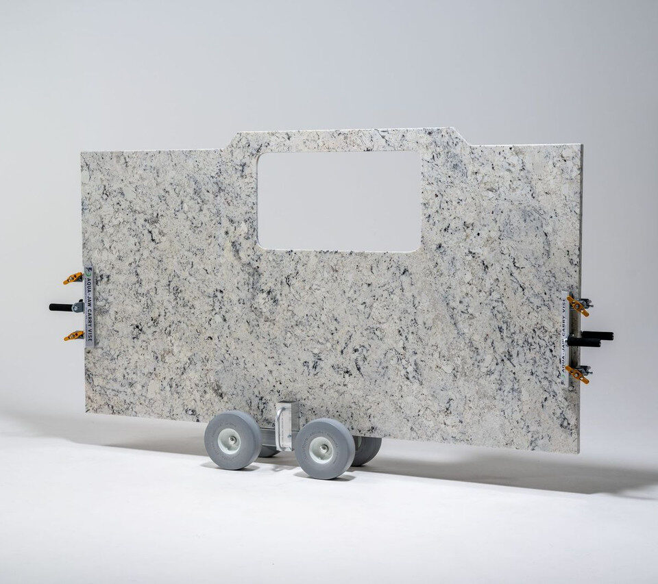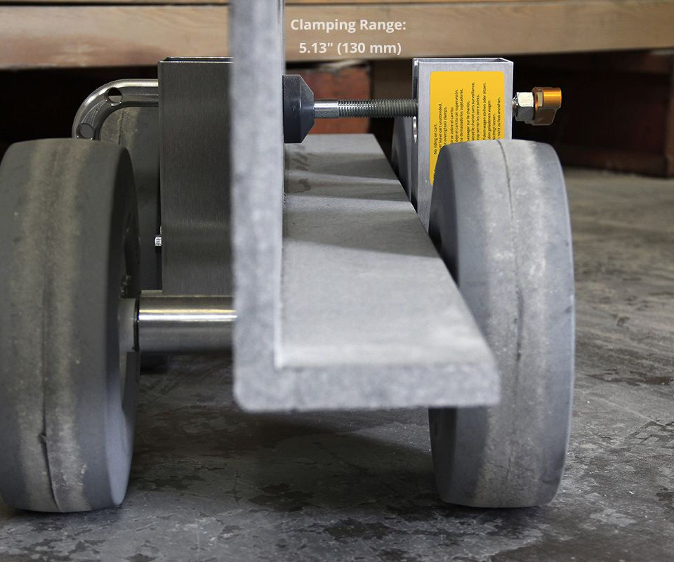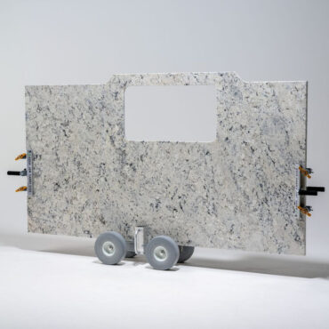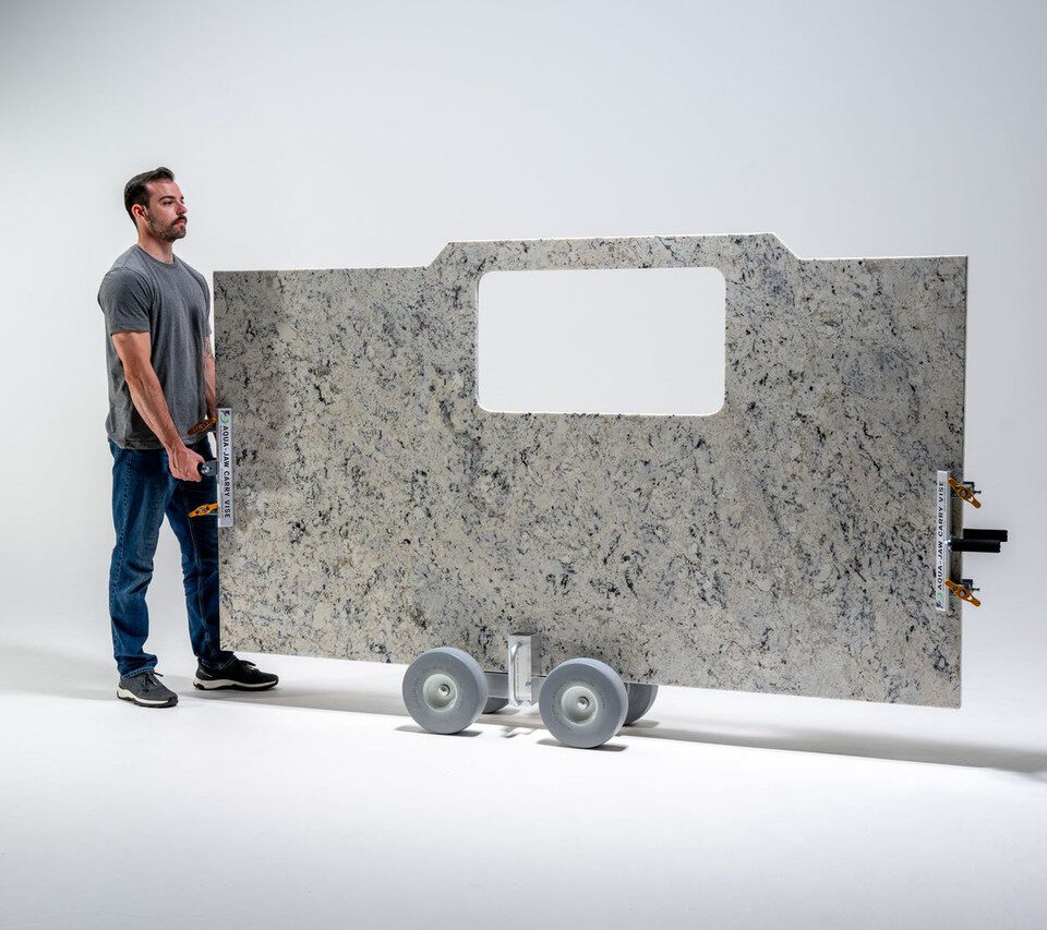 The HD2 features integrated clamps that securely hold countertops in place throughout transport—from the fabrication shop to final installation. Its oversized clamp opening accommodates thicker edge details up to 5” (12.7 cm), including miter laminated edges, making it ideal for a variety of countertop styles.