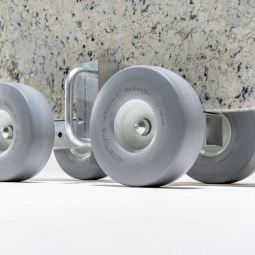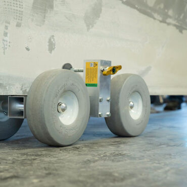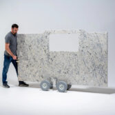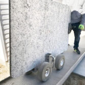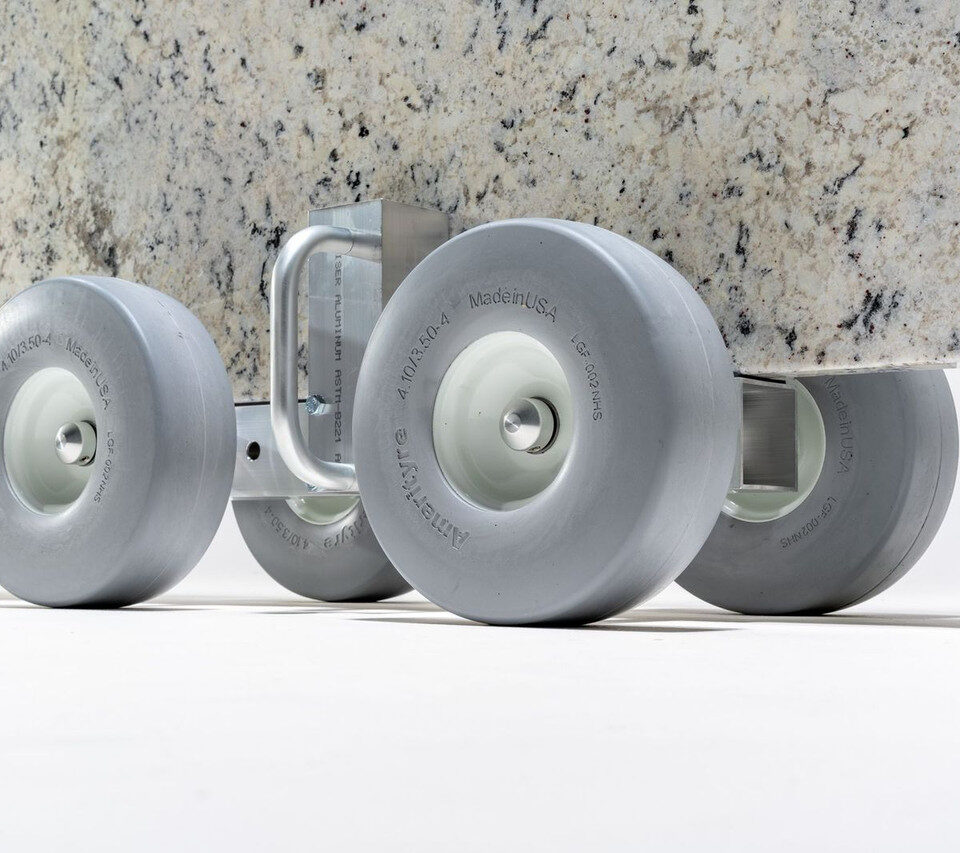 Often used in pairs for extra-large stone or glass pieces weighing up to 2,000 lbs, the dolly is equipped with 10″ non-marking, flat-free tires that provide excellent shock absorption. A rubber-lined support rail helps protect delicate surfaces from damage during handling.