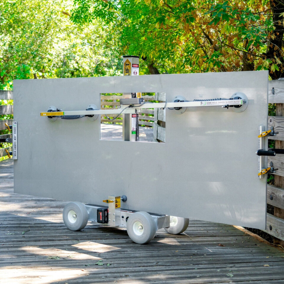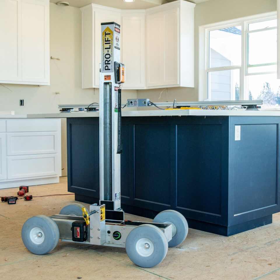 Capable of lifting and transporting up to 1,000 lbs, the Pro-Lift Automatic allows you to raise, lower, and roll large stone pieces throughout the shop or job site with ease. Ideal for final countertop placement, its powered lift elevates materials up to 45″ from the ground to the support rail, while enabling smooth, controlled tilting to reduce risk during installation.