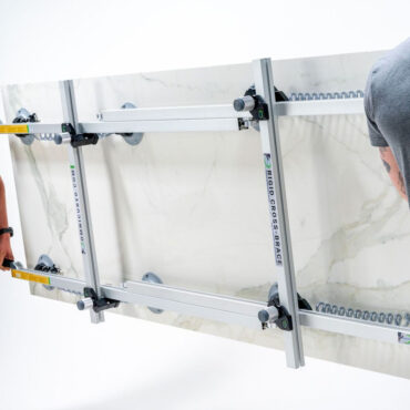 This versatile reinforcement tool features a rigid frame designed to minimize flexing and twisting of large format tile, glass panels, and other fragile materials. Perfect for protecting LFTM (large format thin materials) such as gauged or thin porcelain slabs, GPTP (gauged porcelain tile panels), large format floor tile, and sintered stone like Neolith® or Lapitec® during transport and installation, it helps prevent breakage and reduces injury risk.