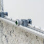 The Sink Hole Saver™ Edge Clamp Assembly features a wider clamping range, improved tightening knobs, and rubber bumper guards designed to protect finished countertop edges during installation. It is compatible with all Omni Cubed® Sink Hole Saver™ stiffening rails.