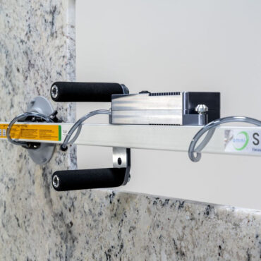 The Vertical Lifting Handle easily attaches to any Omni Cubed® material reinforcement rail, providing a safer and more ergonomic solution for vertical handling. Durable foam grips offer comfort and control, making it ideal for lifting and installing glass, tile, or stone panels with greater ease and stability.