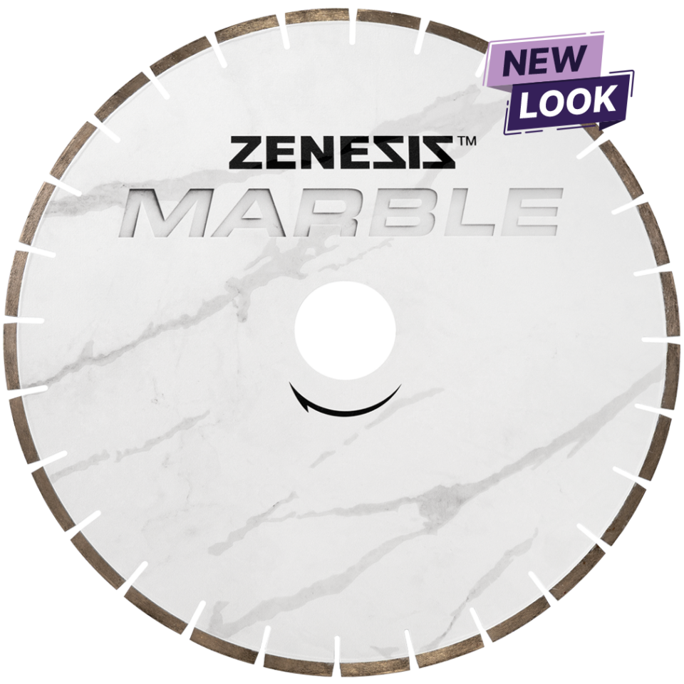 ZENESIS™ brings its exclusive patterned diamond technology to a bridge saw blade engineered specifically for cutting marble and other soft stone materials. The ZENESIS™ Marble Blade delivers exceptionally smooth, fast, and chip-free cuts on all types of marble, setting a new benchmark for performance and reliability. Available in diameters from 12” to 20”, this blade is built to meet the demands of marble fabricators everywhere.
