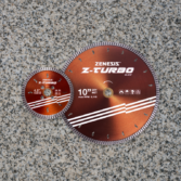 The 9″ Z-Turbo Blade is optimized for today’s 9″ battery-operated saws—delivering exceptional speed and efficiency. The 10″ blade is specifically designed for cutting natural stone and high-PSI concrete pavers on 10″ tile saws.