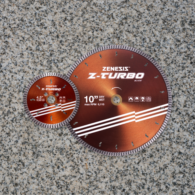 The ZENESIS™ Z-Turbo Blade is engineered with a narrow turbo rim that significantly reduces chipping, delivering smoother, cleaner cuts on demanding materials. Featuring flush-cut holes and a specially formulated bond, this blade maximizes cutting performance on granite and engineered stone.